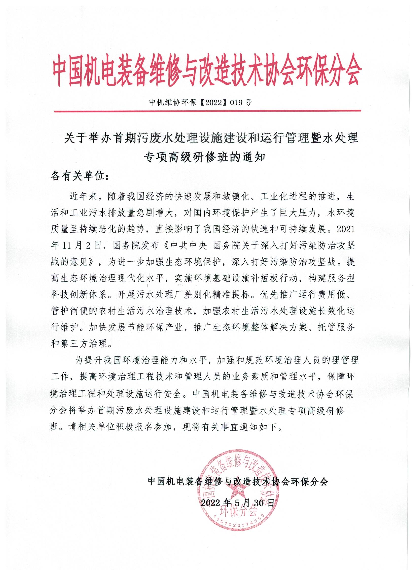 關于舉辦首期污廢水處理設施建設和運行管理暨水處理專項高級研修班的通知!